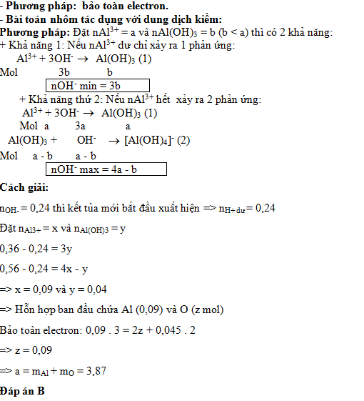 Hoàn tan hoàn toàn a gam hỗn hợp Al và Al2O3 vào dung dịch H2SO4 loãng, thu được dung dịch X và 1,008 lít H2 (đktc). Cho từ từ dung dịch NaOH 1M vào X, số mol kết tủa Al(OH)3 (n mol) phụ thuộc vào thể tích dung dịch NaOH (V lít) được biểu diễn bằng đồ thị bên. Giá trị của a là