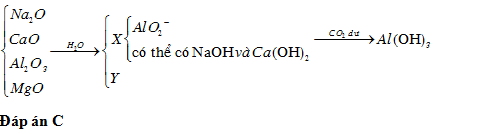 Cho hỗn hợp gồm Na2O, CaO, Al2O3 và MgO vào lượng nước dư, thu được dung dịch X và chất rắn Y. Sục khí CO2 đến dư vào X, thu được kết tủa là
