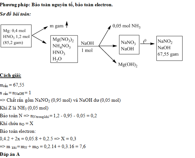 Cho 9,6 gam Mg tác dụng với dung dịch chứa 1,2 mol HNO3, thu được dung dịch X và m gam hỗn hợp