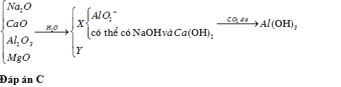 Cho hỗn hợp gồm Na2O, CaO, Al2O3 và MgO vào lượng nước dư, thu được dung dịch X và chất rắn Y. Sục khí CO2 đến dư vào X, thu được kết tủa là