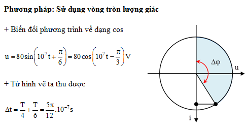 Hiệu điện thế giữa hai bản tụ điện của một mạch dao động LC lí tưởng có phương trình u = 80sin(2.107t +