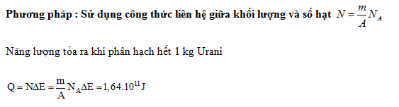 Cho rằng một hạt nhân urani \(_{92}^{235}U\) khi phân hạch thì tỏa ra năng lượng là 200 MeV. Lấy
