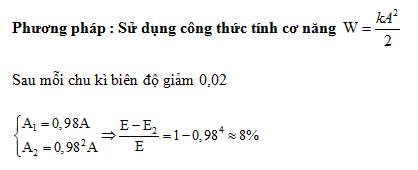 Một con lắc lò xo dao động tắt dần trên mặt phẳng nằm ngang. Cứ sau mỗi chu kì biên độ giảm 2%. Gốc thế năng tại vị trí của vật mà lò xo không biến dạng. Phần trăm cơ năng của con lắc bị mất đi trong hai dao động toàn phần liên tiếp có giá trị gần nhất với giá trị nào sau đây?