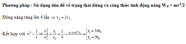 Xét nguyên tử hiđrô theo mẫu nguyên tử Bo. Electron trong nguyên tử chuyển từ quỹ đạo dừng m1 về quỹ đạo dừng m2 thì bán kính giảm 27r0 (r0 là bán kính Bo), đồng thời động năng của êlectron tăng thêm 300%. Bán kính của quỹ đạo dừng m1 có giá trị gần nhất với giá trị nào sau đây?