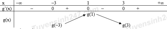 Lập bảng biến thiên của \(g\left( x \right)\) để so sánh giá trị g(1) với hai giá trị còn lại, sau đó dùng công thức tích phân để so sánh g(–3) với g(3)