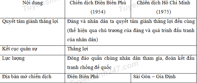 Môt trong những điểm khác nhau giữa chiến dịch Hồ Chí Minh (1975) với chiến dịch Điện Biên