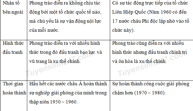 Một trong những điểm khác biệt giữa phong trào giải phóng dân tộc ở châu Phi với châu Á sau