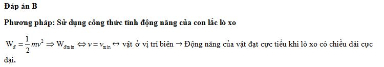 Một con lắc lò xo gồm vật nhỏ và lò xo nhẹ, đang dao động điều hòa trên mặt phẳng nằm ngang. Động năng của con lắc đạt giá trị cực tiểu khi
