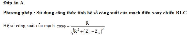 Đặt điện áp xoay chiều vào hai đầu một đoạn mạch gồm điện trở R, cuộn cảm thuần và tụ điện mắc nối tiếp. Biết cảm kháng và dung kháng của đoạn mạch lần lượt là ZL và ZC. Hệ số công suất của đoạn mạch là