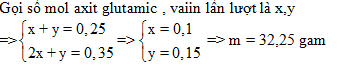 Cho m gam hỗn hợp X gồm axit glutamic và vaiin tác dụng với dung địch HCl dư, thu được (m + 9,125)