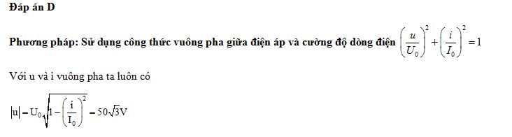 Đặt điện áp xoay chiều có giá trị cực đại là 100 V vào hai đầu cuộn cảm thuần thì cường độ dòng điện trong mạch là i = 2cosl00πt (A). Khi cường độ dòng điện i = 1 A thì điện áp giữa hai đầu cuộn cảm có độ lớn bằng