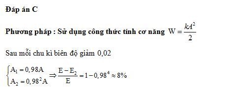 Một con lắc lò xo dao động tắt dần trên mặt phẳng nằm ngang. Cứ sau mỗi chu kì biên độ giảm 2%. Gốc thế năng tại vị trí của vật mà lò xo không biến dạng. Phần trăm cơ năng của con lắc bị mất đi trong hai dao động toàn phần liên tiếp có giá trị gần nhất với giá trị nào sau đây?