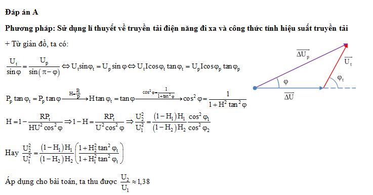 Điện năng được truyền từ một trạm phát điện đến nơi tiêu thụ bằng đường dây tải điện một pha. Biết đoạn mạch tại nơi tiêu thụ (cuối đường dây tải điện) tiêu thụ điện với công suất không đổi và có hệ số công suất luôn bằng 0,8. Để tăng hiệu suất của quá trình truyền tải từ 80% lên 90% thì cần tăng điện áp hiệu dụng ở trạm phát điện lên