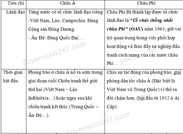 Một trong những điểm khác biệt giữa phong trào giải phóng dân tộc ở châu Phi với châu Á sau