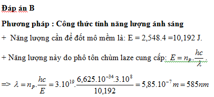 Trong y học, người ta dùng một laze phát ra chùm sáng có bước sóng λ để "đốt" các mô mềm.