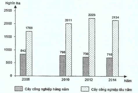 Cho biểu đồ về cây công nghiệp của nước ta qua các năm: