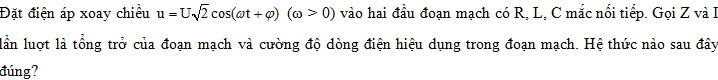 Phương pháp : Công thức định luật Ôm đối với đoạn mạch xoay chiều có R,L,C mắc nối tiếp