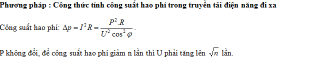 Điện năng được truyền từ một trạm phát điện đến nơi tiêu thụ bằng đường dây tải điện một pha. Biết công suất truyền đi không đổi và coi hệ số công suất của mạch điện bằng 1. Để công suất hao phí trên đường dây truyền tải giảm n lần (n > 1) thì phải điều chỉnh điện áp hiệu dụng ở trạm phát điện