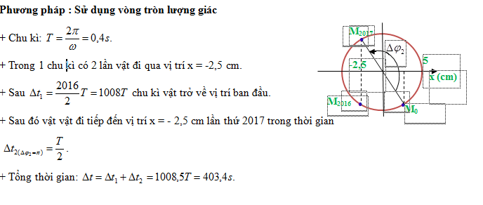 Một vật dao động theo phương trình x = 5cos(5πt – π/3)(cm) (t tính bằng s). Kể từ t = 0, thời điểm vật qua vị trí có li độ x = - 2,5 cm lần thứ 2017 là