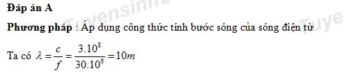 Một sóng điện từ có tần số 30MHz truyền trong chân không với tốc độ 3.108 m/s thì có bước sóng là