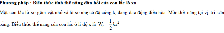 Một con lắc lò xo gồm vật nhỏ và lò xo nhẹ có độ cứng k, đang dao động điều hòa. Mốc thế năng tại vị trí cân bằng. Biểu thức thế năng của con lắc ở li độ x là