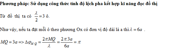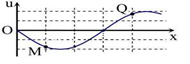 Trên một sợi dây dài đang có sóng ngang hình sin truyền qua theochiều dương của trục Ox. Tại thời điểm t0, một đoạn của sợi dây có hình dạng như hình bên. Hai phần tử dây tại M và Q dao động lệch pha nhau
