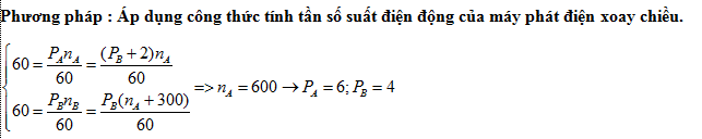Hai máy phát điện xoay chiều một pha A và B (có phần cảm là rôto) đang hoạt động ổn định,
