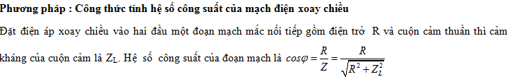 Đặt điện áp xoay chiều vào hai đầu một đoạn mạch mắc nối tiếp gồm điện trở R và cuộn cảm thuần thì cảm kháng của cuộn cảm là ZL. Hệ số công suất của đoạn mạch là