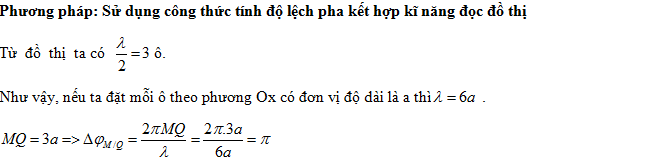 Trên một sợi dây dài đang có sóng ngang hình sin truyền qua theochiều dương của trục Ox. Tại thời điểm t0, một đoạn của sợi dây có hình dạng như hình bên. Hai phần tử dây tại M và Q dao động lệch pha nhau