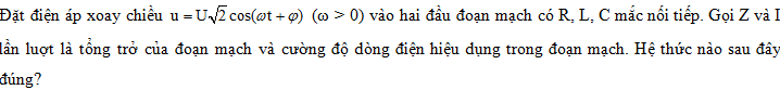 Phương pháp : Công thức định luật Ôm đối với đoạn mạch xoay chiều có R,L,C mắc nối tiếp