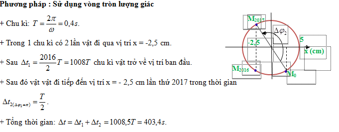 Một vật dao động theo phương trình x = 5cos(5πt – π/3)(cm) (t tính bằng s). Kể từ t = 0, thời điểm vật qua vị trí có li độ x = - 2,5 cm lần thứ 2017 là