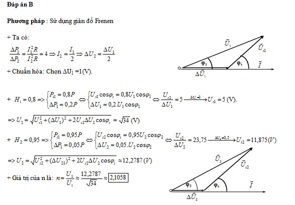 Điện năng được truyền từ trạm phát điện đến nơi tiêu thụ bằng đường dây tải điện một phA. Ban đầu hiệu suất truyền tải là 80%. Cho công suất truyền đi không đổi và hệ số công suất ở nơi tiêu thụ (cuối đường dây tải điện) luôn bằng 0,8. Để giảm hao phí trên đường dây 4 lần thì cần phải tăng điện áp hiệu dụng ở trạm phát điện lên n lần. Giá trị của n là