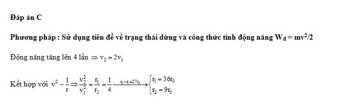 Xét nguyên tử hiđrô theo mẫu nguyên tử Bo. Electron trong nguyên tử chuyển từ quỹ đạo dừng m1 về quỹ đạo dừng m2 thì bán kính giảm 27r0 (r0 là bán kính Bo), đồng thời động năng của êlectron tăng thêm 300%. Bán kính của quỹ đạo dừng m1 có giá trị gần nhất với giá trị nào sau đây?