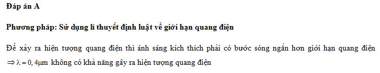 Giới hạn quang điện của đồng là 0,30 μn. Trong chân không, chiếu một chùm bức xạ đơn sắc có bước sóng λ vào bề mặt tấm đồng. Hiện tượng quang điện không xảy ra nếu λ có giá trị là
