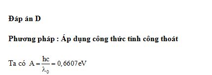 Giới hạn quang dẫn của một chất bán dẫn là 1,88 μm. Lấy h = 6,625.10-34 J.s; c = 3.108 m/s và 1 eV = 1,6.10-19 J. Năng lượng cần thiết để giải phóng một êlectron liên kết thành êlectron dẫn (năng lượng kích hoạt) của chất đó là