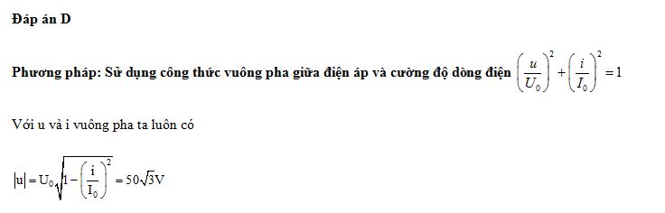 Đặt điện áp xoay chiều có giá trị cực đại là 100 V vào hai đầu cuộn cảm thuần thì cường độ dòng điện trong mạch là i = 2cosl00πt (A). Khi cường độ dòng điện i = 1 A thì điện áp giữa hai đầu cuộn cảm có độ lớn bằng