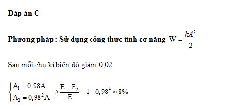 Một con lắc lò xo dao động tắt dần trên mặt phẳng nằm ngang. Cứ sau mỗi chu kì biên độ giảm 2%. Gốc thế năng tại vị trí của vật mà lò xo không biến dạng. Phần trăm cơ năng của con lắc bị mất đi trong hai dao động toàn phần liên tiếp có giá trị gần nhất với giá trị nào sau đây?
