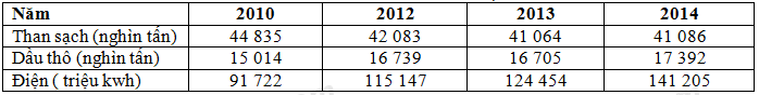Cho bảng số liệu sau: MỘT SỐ SẢN PHÂM CÔNG NGHIỆP CỦA NƯỚC TA, GIAI ĐOẠN 2010 –