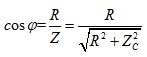 Đặt điện áp xoay chiều vào hai đầu đoạn mạch gồm điện trở R và tụ điện mắc nối tiếp thì dung kháng của tụ điện là ZC. Hệ số công suất của đoạn mạch là