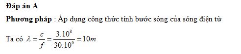 Một sóng điện từ có tần số 30MHz truyền trong chân không với tốc độ 3.108 m/s thì có bước sóng là