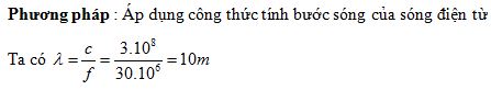Một sóng điện từ có tần số 30MHz truyền trong chân không với tốc độ 3.108 m/s thì có bước sóng là