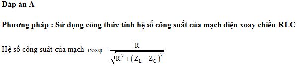 Đặt điện áp xoay chiều vào hai đầu một đoạn mạch gồm điện trở R, cuộn cảm thuần và tụ điện mắc nối tiếp. Biết cảm kháng và dung kháng của đoạn mạch lần lượt là ZL và ZC. Hệ số công suất của đoạn mạch là