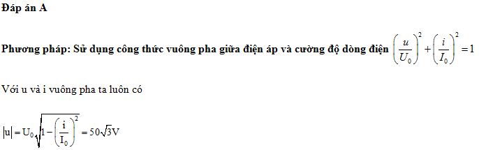 Đặt điện áp xoay chiều có giá trị cực đại là 100 V vào hai đầu cuộn cảm thuần thì cường độ dòng điện trong mạch là i = 2cosl00πt (A). Khi cường độ dòng điện i = 1 A thì điện áp giữa hai đầu cuộn cảm có độ lớn bằng