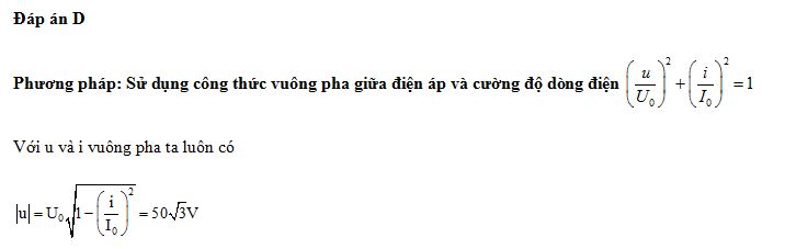 Đặt điện áp xoay chiều có giá trị cực đại là 100 V vào hai đầu cuộn cảm thuần thì cường độ dòng điện trong mạch là i = 2cosl00πt (A). Khi cường độ dòng điện i = 1 A thì điện áp giữa hai đầu cuộn cảm có độ lớn bằng