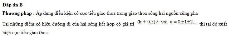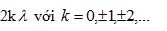 Giao thoa ở mặt nước với hai nguồn sóng kết hợp đặt tại A và B dao động điều hòa cùng pha theo phương thẳng đứng. Sóng truyền ở mặt nước có bước sóng λ. Cực tiểu giao thoa nằm tại những điểm có hiệu đường đi của hai sóng từ hai nguồn tới đó bằng