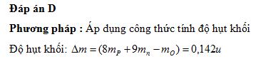 có khối lượng 16,9947u. Biết khối lượng của prôtôn và notron lần lượt là 1,0073 u và 1,0087 u. Độ hụt khối của