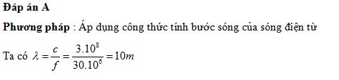 Một sóng điện từ có tần số 30MHz truyền trong chân không với tốc độ 3.108 m/s  thì có bước sóng là