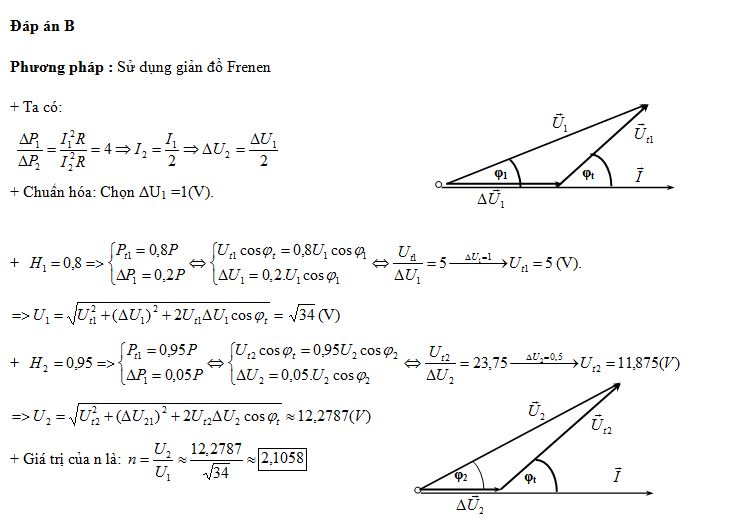Điện năng được truyền từ trạm phát điện đến nơi tiêu thụ bằng đường dây tải điện một pha. Ban đầu hiệu suất truyền tải là 80%. Cho công suất truyền đi không đổi và hệ số công suất ở nơi tiêu thụ (cuối đường dây tải điện) luôn bằng 0,8. Để giảm hao phí trên đường dây 4 lần thì cần phải tăng điện áp hiệu dụng ở trạm phát điện lên n lần. Giá trị của n là
