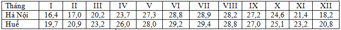 Căn cứ vào bảng số liệu, cho biết nhận xét nào sau đây không đúng về nhiệt độ của Hà Nội và Huế?