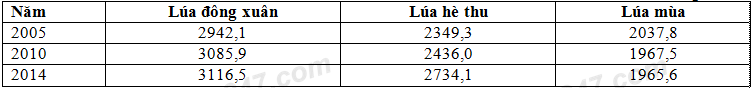 Cho bảng số liệu DIỆN TÍCH LÚA THEO MÙA VỤ Ở NƯỚC TA QUA CÁC NĂM (Đơn vị: nghìn ha) (